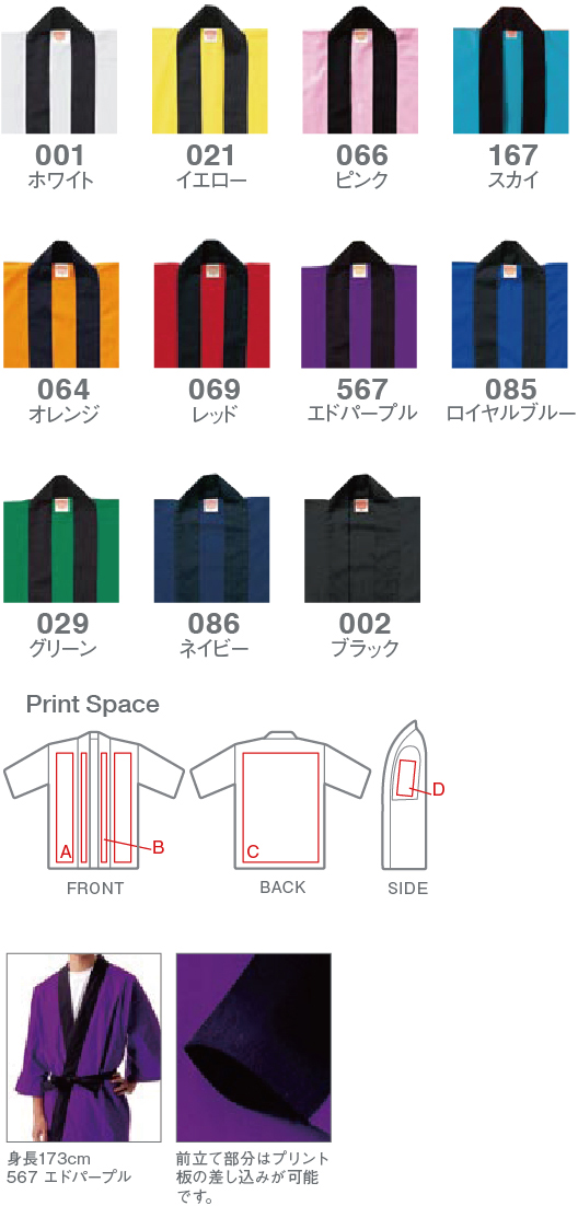 充実カラーでオリジナル性が出るハッピ イベントや応援にどうぞ!オリジナルプリントでお祭り感アップ!!